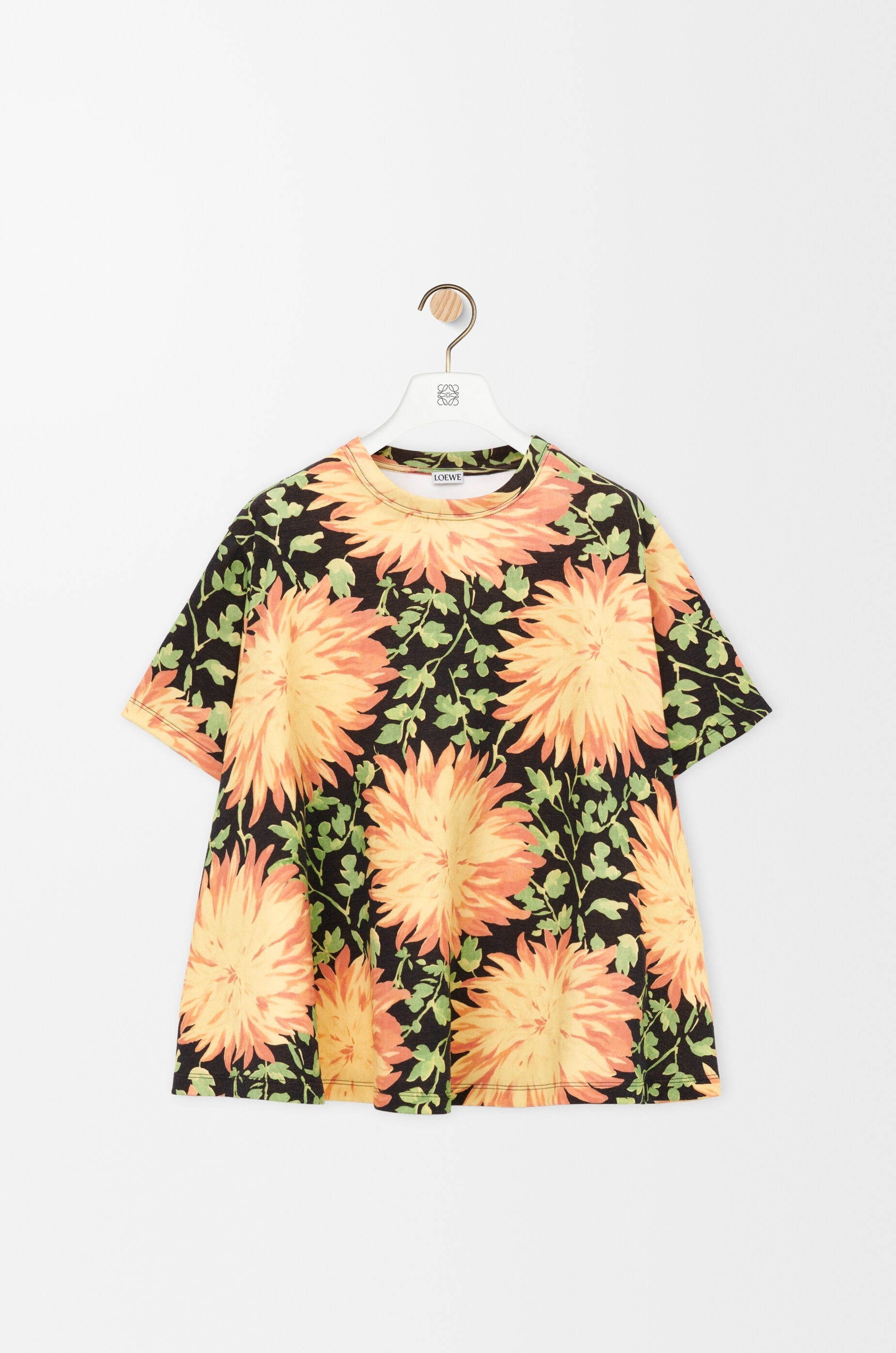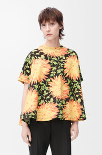 Top in compact cotton blend featuring a trapeze silhouette and an allover Dahlia floral print. - Regular fit, regular length - Round neck - Inside layer with structured hem - Anagram embroidery placed at the back Details - Colour : Multicolor - Main material : Cotton/Polyamide - Weight : 0.4 kg - Model ID : S540Y22X72 - Made in : Portugal