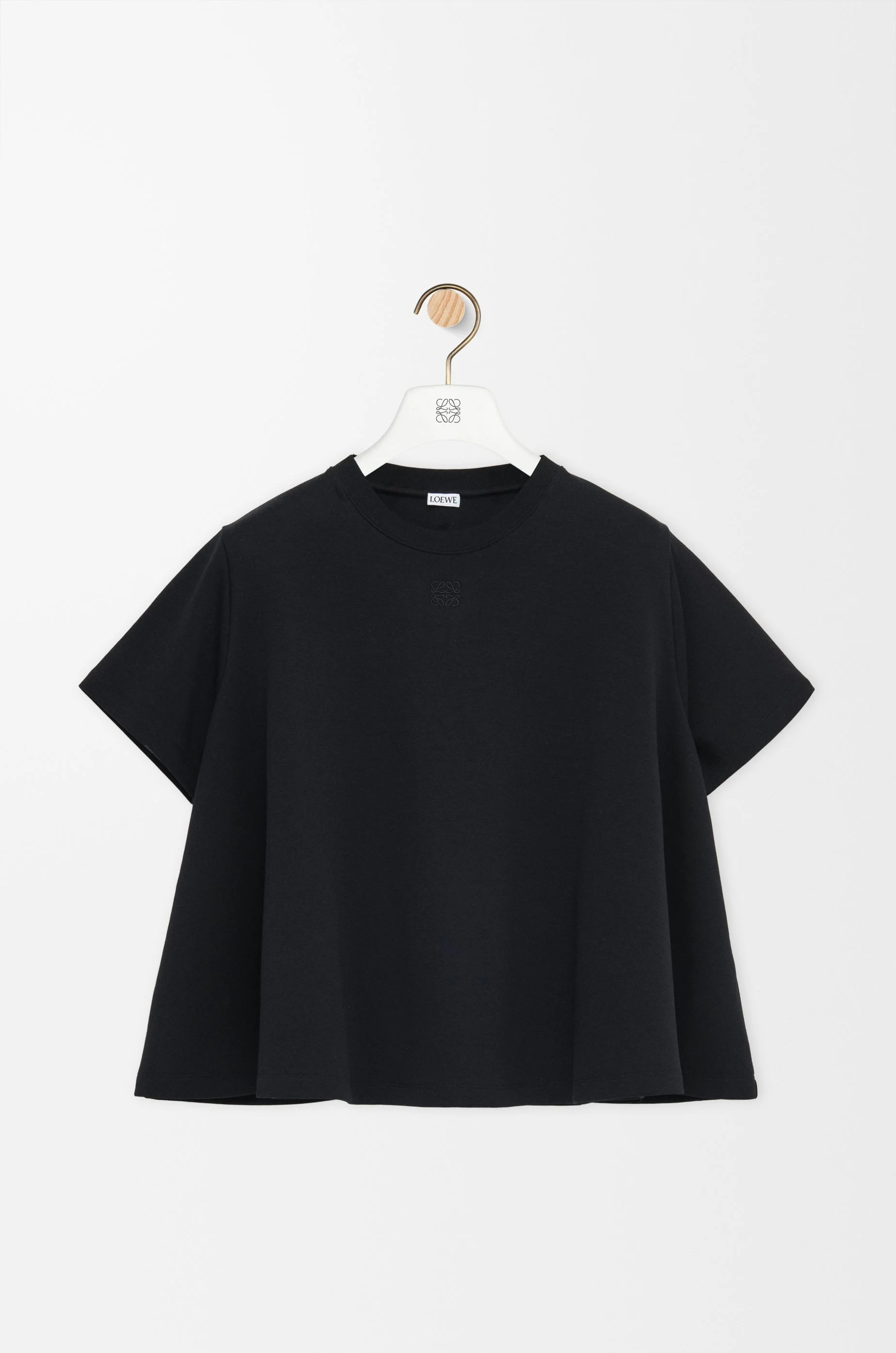 Top in compact cotton blend featuring a trapeze silhouette. - Relaxed fit, regular length - Round neck - Inner layer with structured hem - Anagram embroidery placed at the front Colour: Black Main material: Cotton/Polyamide Weight: 0.4 kg Made in: Portugal Materials & care Main Material: 80% cotton 20% polyamide