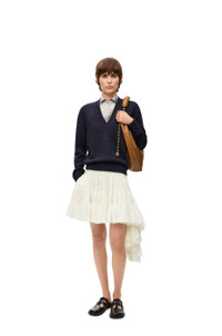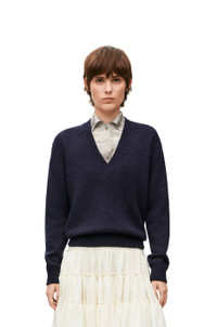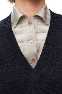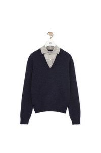 Sweater in medium-weight wool and alpaca knit with silk knit inserts. - Jersey knit with check jacquard polo collar - Relaxed fit - Regular length - Trompe l’oeil layering - Classic buttoned collar - Ribbed V neck, cuffs and hem Details - Colour: Navy/Grey - Main material: Wool/Silk - Weight: 0.4 kg - Model ID: S540Y14KEQ - Made in: Italy