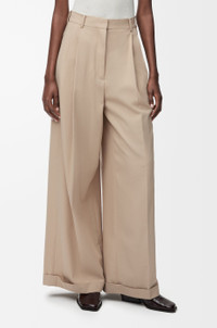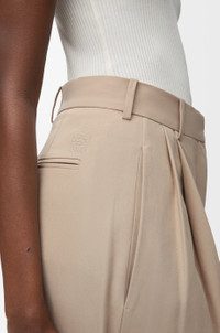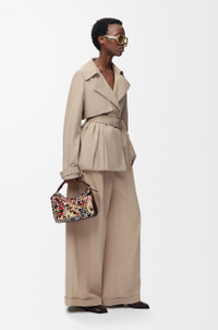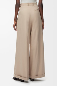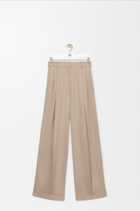 Trousers in lightweight cotton gabardine. - Regular fit, regular length - High waist, wide leg - Concealed zip fly - Seam pockets, rear jet pocket - Pressed creases at the front and back - Cuffed hem - Anagram embroidery placed at the back Colour: Beige Main material: Cotton Weight: 0.6 kg Made in: Italy Materials & care Main Material: 100% cotton