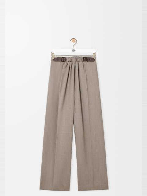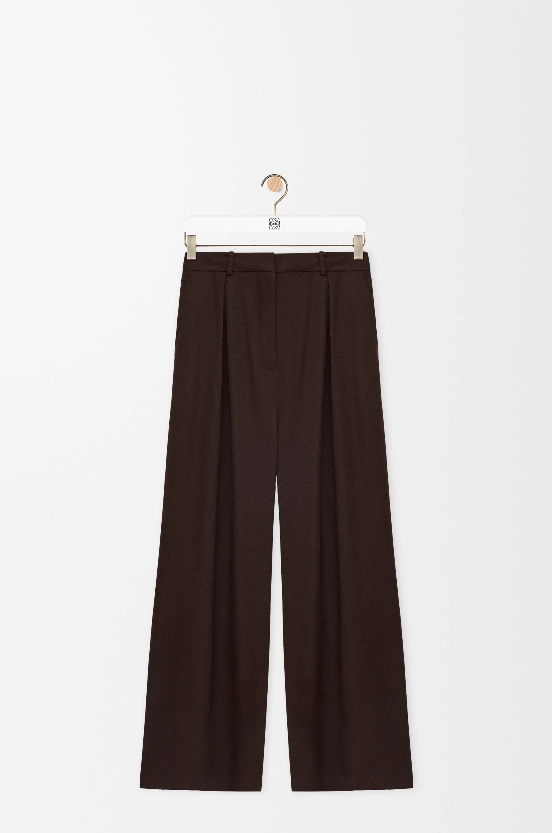 Trousers in lightweight fluid wool gabardine featuring a contrast rib waistband at the back and pleats at the front. - Regular fit, regular length - Mid waist, straight leg - Concealed zip fly - Slash pockets - LOEWE embossed leather patch placed at the back Colour: Brown Main material: Wool Weight: 0.5 kg Made in: Italy Materials & care Main Material: 100% wool
