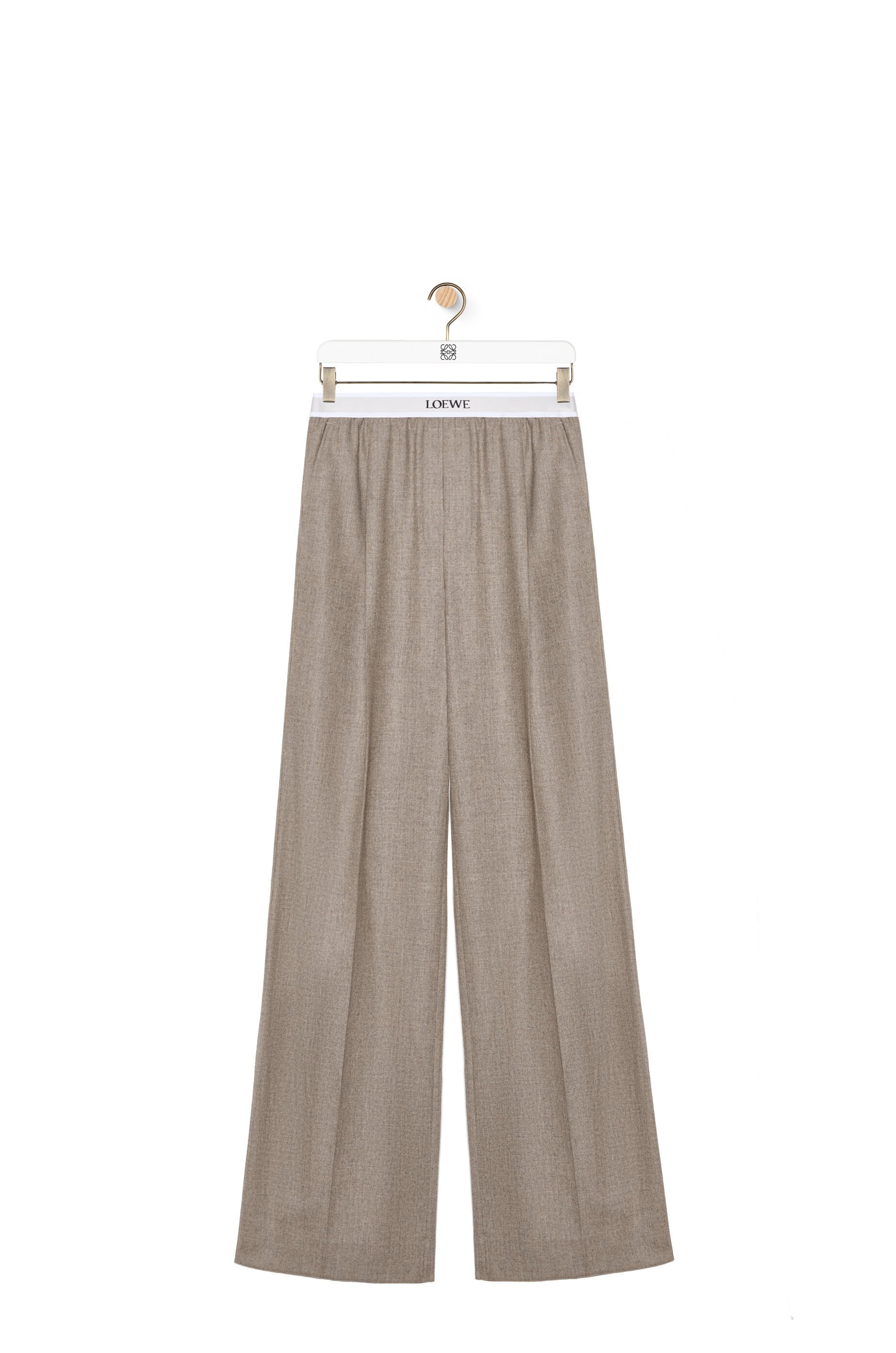 Trousers in lightweight wool and cashmere flannel tailoring. - Relaxed fit, regular length - Mid waist, straight leg - Elasticated LOEWE jacquard waistband - Mock fly - Slash pockets, rear welt pocket Details - Colour : Beige - Main material : Wool/Cashmere - Weight : 0.3 kg - Model ID : S359Y04XFJ - Made in : Italy