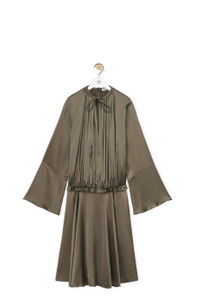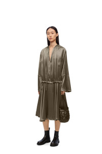 Tunic dress crafted in lightweight satin viscose. - Relaxed fit - Knee length - V neck with ties - Pleated bodice with ruffle at the waist - Seam pockets Details - Colour: Tea Dust Glaze - Main material: Viscose - Weight: 0.6 kg - Model ID: S359Y09XDC - Made in: Italy