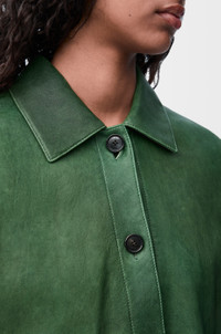 Jacket in lightweight vintage-effect nappa lambskin featuring turn-up cuffed sleeves. - Regular fit, regular length - Classic collar - Button front fastening - Patch pockets - Fully lined Details - Colour : Dark Green - Main material : Nappa - Weight : 0.9 kg - Model ID : S359Y34L46 - Made in : Italy