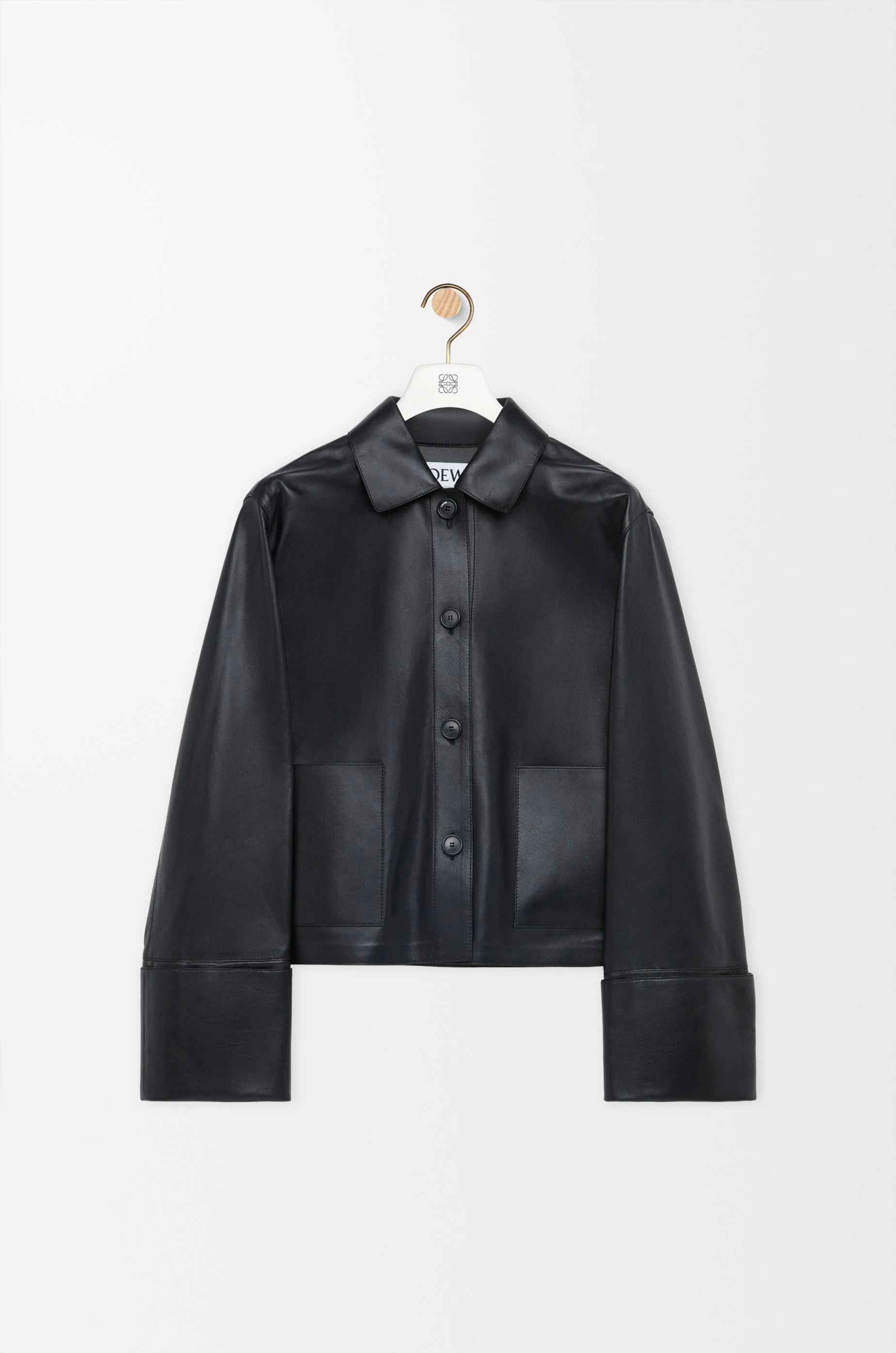 Jacket in lightweight nappa lambskin featuring turn-up cuff sleeves. - Regular fit, regular length - Classic collar - Button front fastening - Patch pockets Colour: Black Main material: Nappa Weight: 0.8 kg Made in: Spain Materials & care Main Material: 100% lambskin