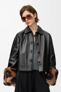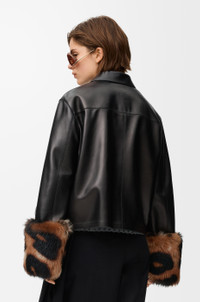 Jacket in lightweight nappa plonge lambskin featuring turn-up sleeves with detachable printed shearling cuffs. - Regular fit, regular length - Classic collar - Button front fastening - Patch pockets - Embossed Anagram placed at the back Colour: Black Main material: Nappa Weight: 0.9 kg Made in: Spain Materials & care Main Material: 100% lambskin