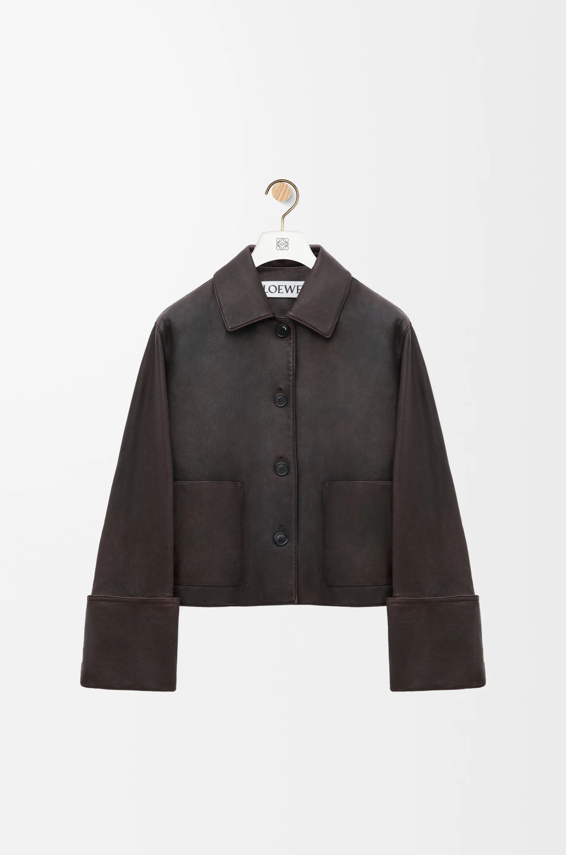 Jacket in lightweight vintage-effect nappa lambskin featuring turn-up cuffed sleeves. - Regular fit, regular length - Classic collar - Button front fastening - Patch pockets - Fully lined Details - Colour : Brown - Main material : Nappa - Weight : 0.9 kg - Model ID : S359Y34L46 - Made in : Italy