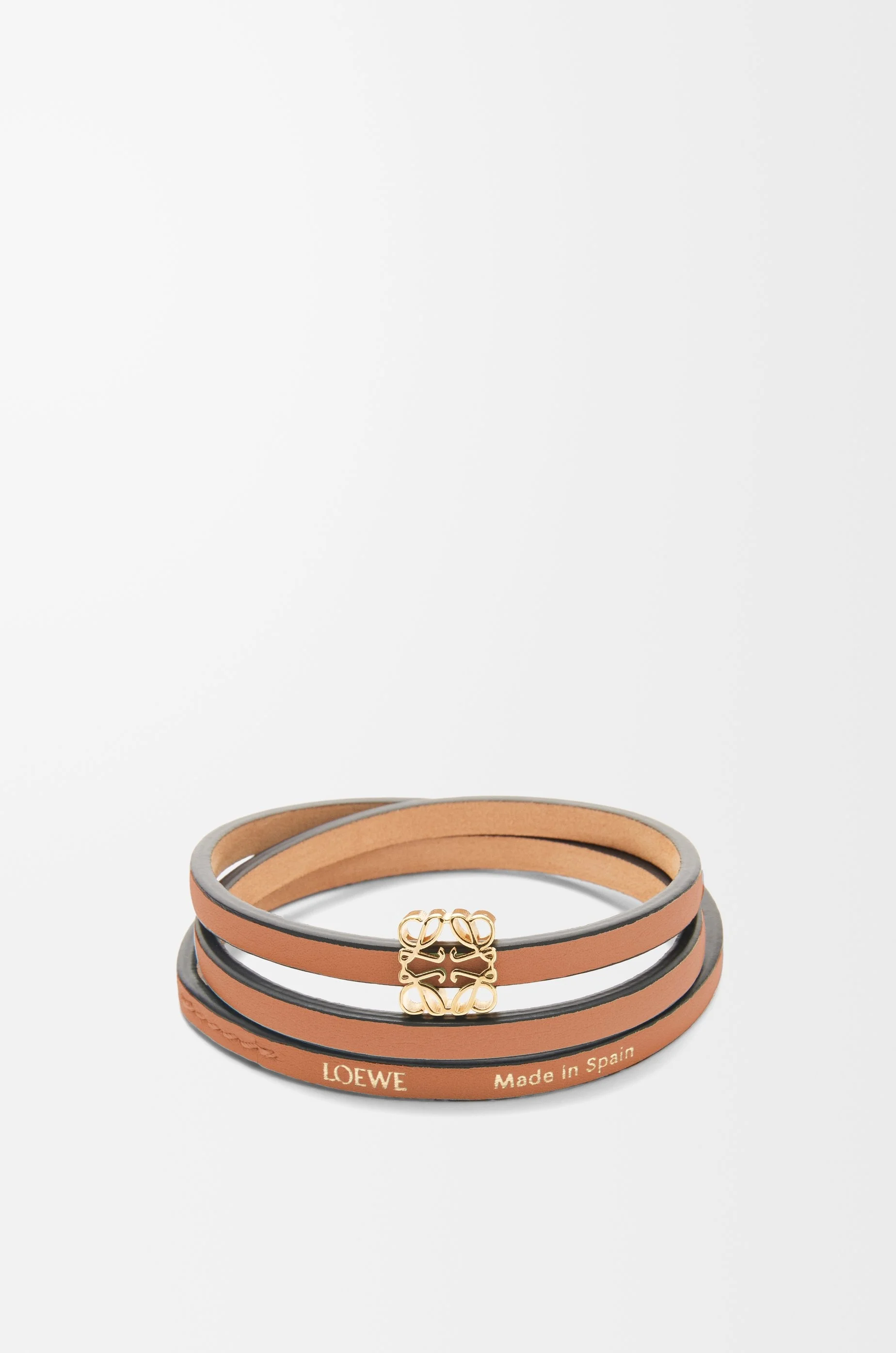 Twist bangle crafted in calfskin with an Anagram dice. - Metallic foil embossed LOEWE Details - Colour: Tan - Metallic colour: Gold - Main material: Calf - Weight: 0.01 kg - Depth (cm): 1.9 - Depth (inch): 0.7 - Model ID: J920240X17 - Made in: Spain