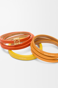 Twist double bracelet in calfskin with an Anagram dice. - Embossed LOEWE Colour: Vivid Orange/Yellow Metallic colour: Gold Main material: Calf Weight: 0.1 kg Made in: Spain
