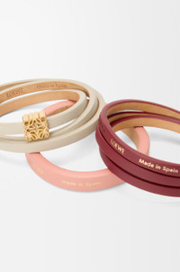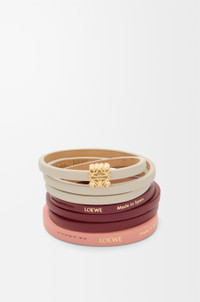 Twist double bracelet in calfskin with an Anagram dice. - Embossed LOEWE Colour: Light Ghost/Burgundy Metallic colour: Gold Main material: Calf Weight: 0.1 kg Made in: Spain