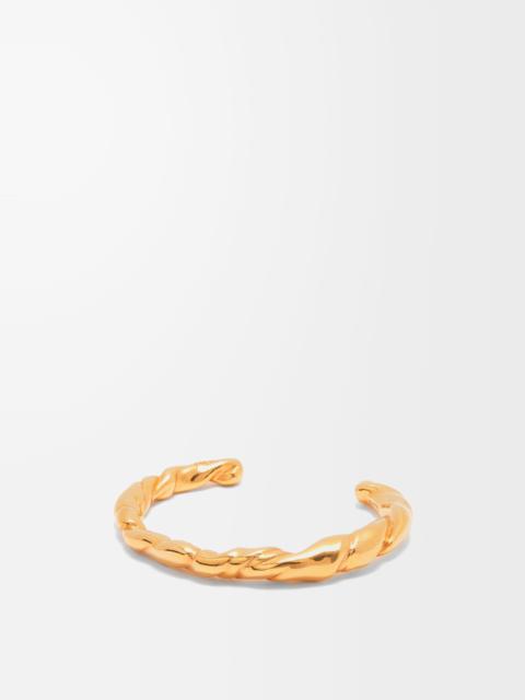 A cuff inspired by the twists of nappa leather. This medium version is crafted in sterling silver with a 24k gold finish. - 925/1000 Silver - Engraved with LOEWE - Small: 14cm wide with a 2.7cm opening - Medium: 15cm wide with a 2.85cm opening - Large: 16cm wide with a 3cm opening Details - Colour : Gold - Metallic colour : Gold - Main material : Sterling Silver - Weight : 0.098 kg - Height (cm) : 6.3 - Width (cm) : 8.25 - Depth (cm) : 1.79 - Height (inch) : 2.5 - Width (inch) : 3.2 - Depth (inch) : 0.7 - Model ID : J917240X11 - Made in : Italy
