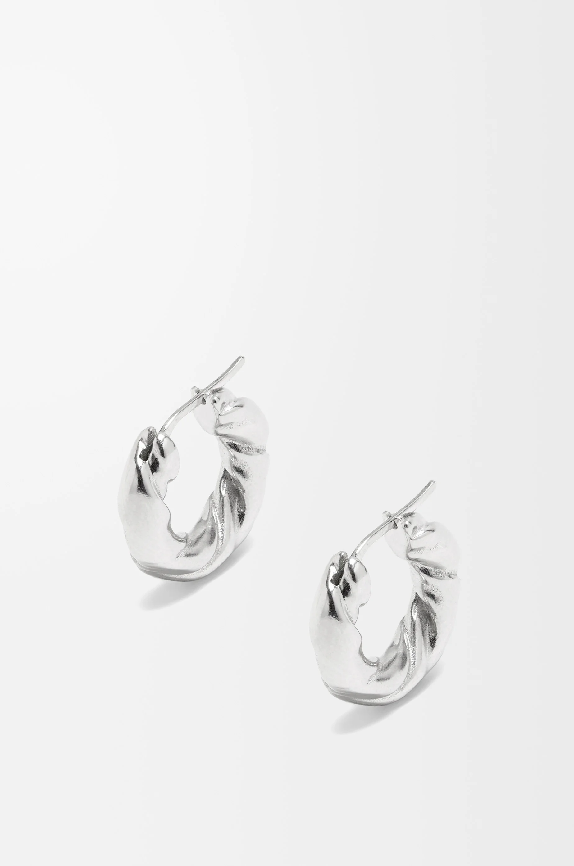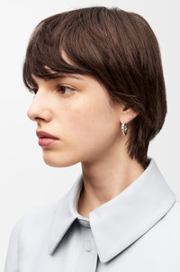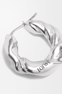 Hoop earrings inspired by the twists of nappa leather. Crafted in sterling silver with a rhodium finish. - Stud fastening - Engraved with LOEWE Details - Colour : Silver - Metallic colour : Silver - Main material : Sterling Silver - Weight : 0.018 kg - Height (cm) : 2.1 - Width (cm) : 2.15 - Depth (cm) : 0.58 - Height (inch) : 0.8 - Width (inch) : 0.8 - Depth (inch) : 0.2 - Model ID : J000239X09 - CIL : - 0010622306 - Made in : Italy
