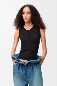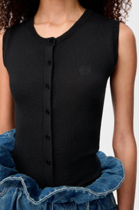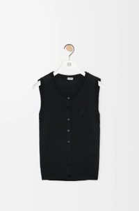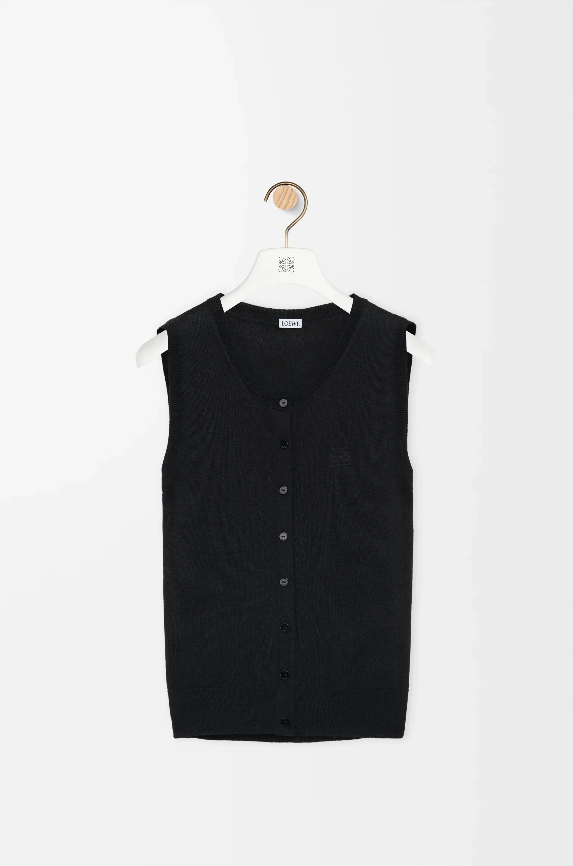 Vest in ultra-lightweight cashmere and silk featuring gathered details at the sides. - Small fit, regular length - Jersey stitch - Round neck - Ribbed collar, armholes and hem - Anagram embroidery placed on the chest Colour: Black Main material: Cashmere/Silk Weight: 0.11 kg Made in: Italy Materials & care Main Material: 67% cashmere 29% silk 3% polyamide 1% elastane