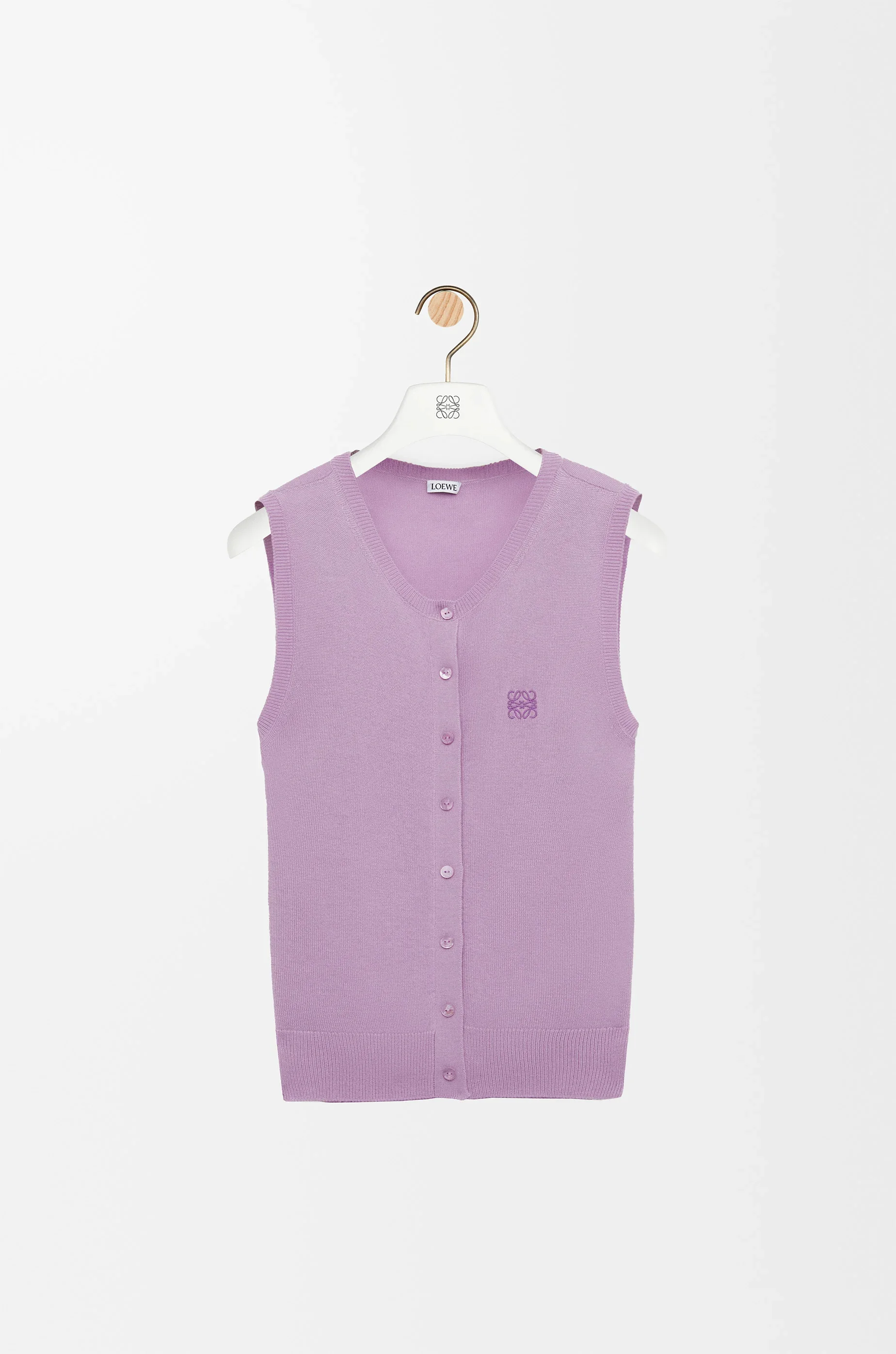 Vest in ultra-lightweight cashmere and silk featuring gathered details at the sides. - Small fit, regular length - Jersey stitch - Round neck - Ribbed collar, armholes and hem - Anagram embroidery placed on the chest Colour: Lilac Main material: Cashmere/Silk Weight: 0.11 kg Made in: Italy Materials & care Main Material: 67% cashmere 29% silk 3% polyamide 1% elastane