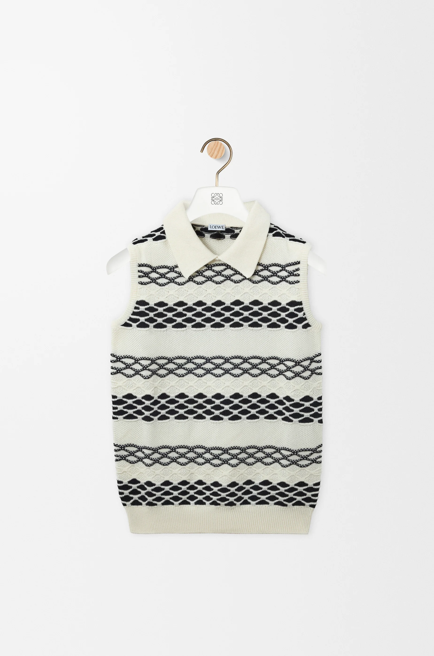 Vest in lightweight cotton jacquard inspired by Anni Albers's "Fringes" tapestry. This vest is part of the LOEWE x Albers collection. - Regular fit, regular length - Polo collar - Ribbed hem Colour: Black/White Main material: Cotton Weight: 0.3 kg Made in: Italy Materials & care Main Material: 100% cotton