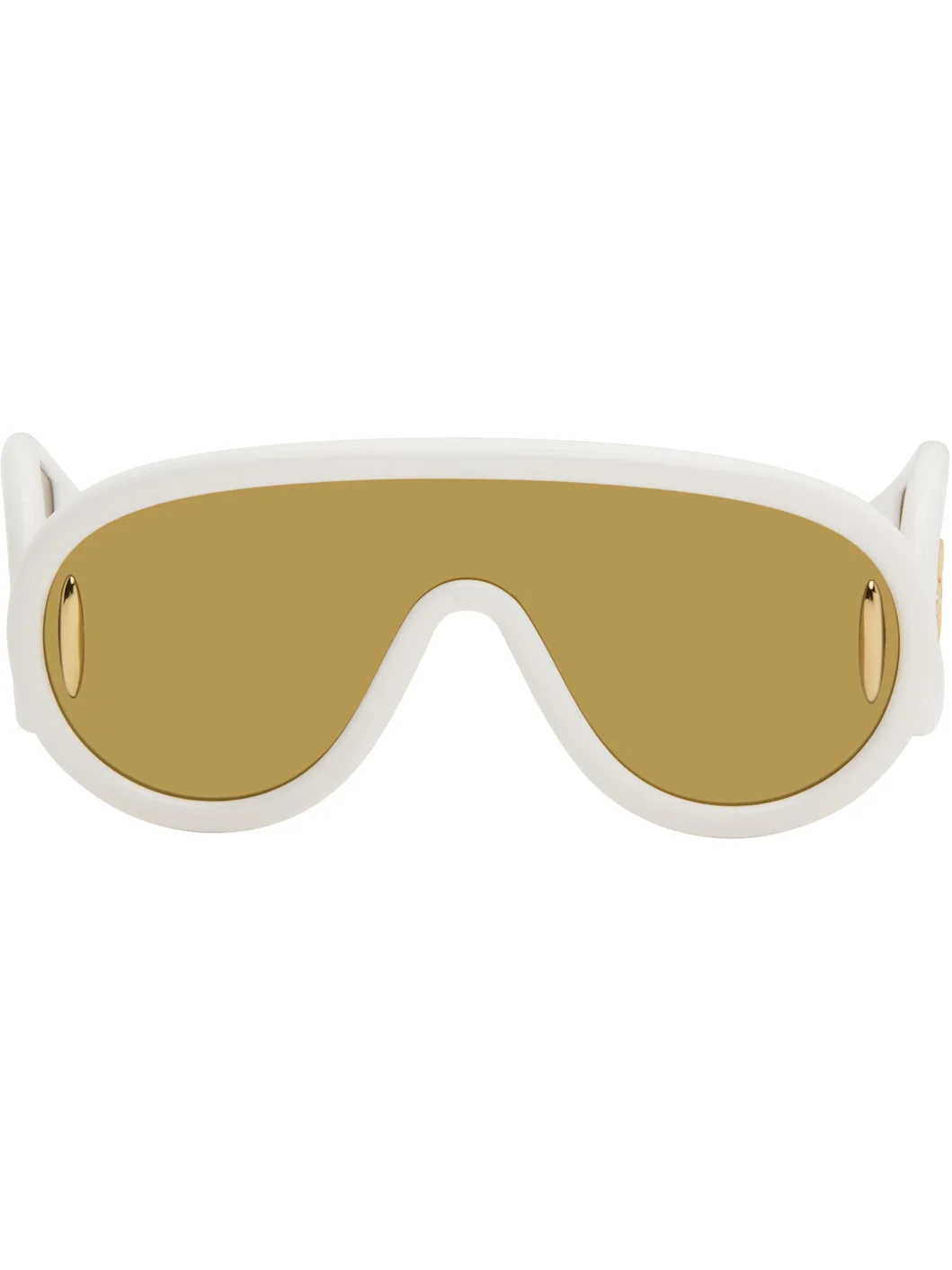 Shield-style acetate-frame sunglasses. · Mirrored gold-tone lens at face and arms · Category 3 lenses · Integrated nose pads · Logo graphic hardware at temples · Includes pouch · Size: 140.0 145 Supplier color: Ivory/Brown Acetate. Made in Italy 252677F005054