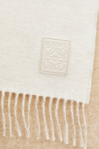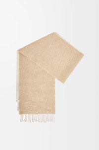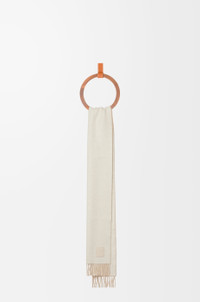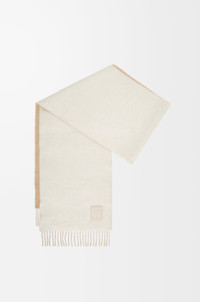 Scarf crafted in double face wool and cashmere blend. - 28cm x 180cm - Two-tone design - Fringed edges - LOEWE Anagram leather patch placed on the corner Details - Colour : Ivory/Sand - Main material : Wool/Cashmere - Weight : 0.163 kg - Height (cm) : 180 - Width (cm) : 28 - Height (inch) : 70.9 - Width (inch) : 11 - Model ID : F811251X06 - CIL : - 0011082245 - Made in : United Kingdom