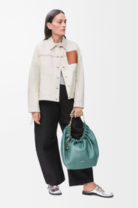 Jacket in lightweight cotton and linen featuring an asymmetric front to back hem with ties at the side. - Regular fit, regular length - Classic collar - Button front fastening, buttoned cuffs - Patch pockets - Signature four-row tobacco top stitching - LOEWE Anagram embossed leather pocket placed on the chest Colour: Ecru Main material: Cotton/Linen Weight: 0.6 kg Made in: Italy Materials & care Main Material: 58% cotton 42% linen