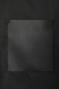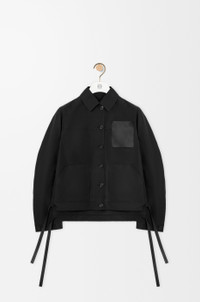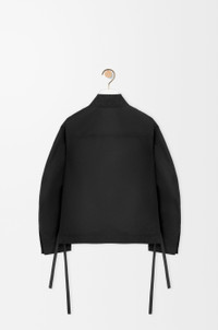 Jacket in lightweight cupro shell featuring an asymmetric front to back hem with ties at the sides. - Relaxed fit, regular length - Classic collar - Button front fastening, buttoned cuffs - Patch pockets - LOEWE Anagram embossed leather pocket placed on the chest Colour: Black Main material: Cupro Weight: 0.55 kg Made in: Italy Materials & care Main Material: 53% cupro 47% polyamide