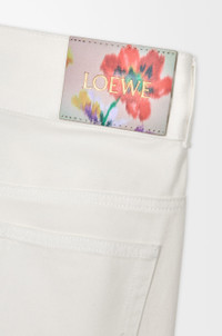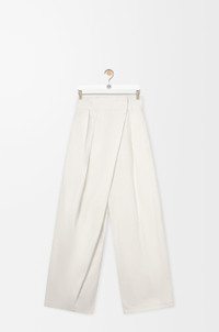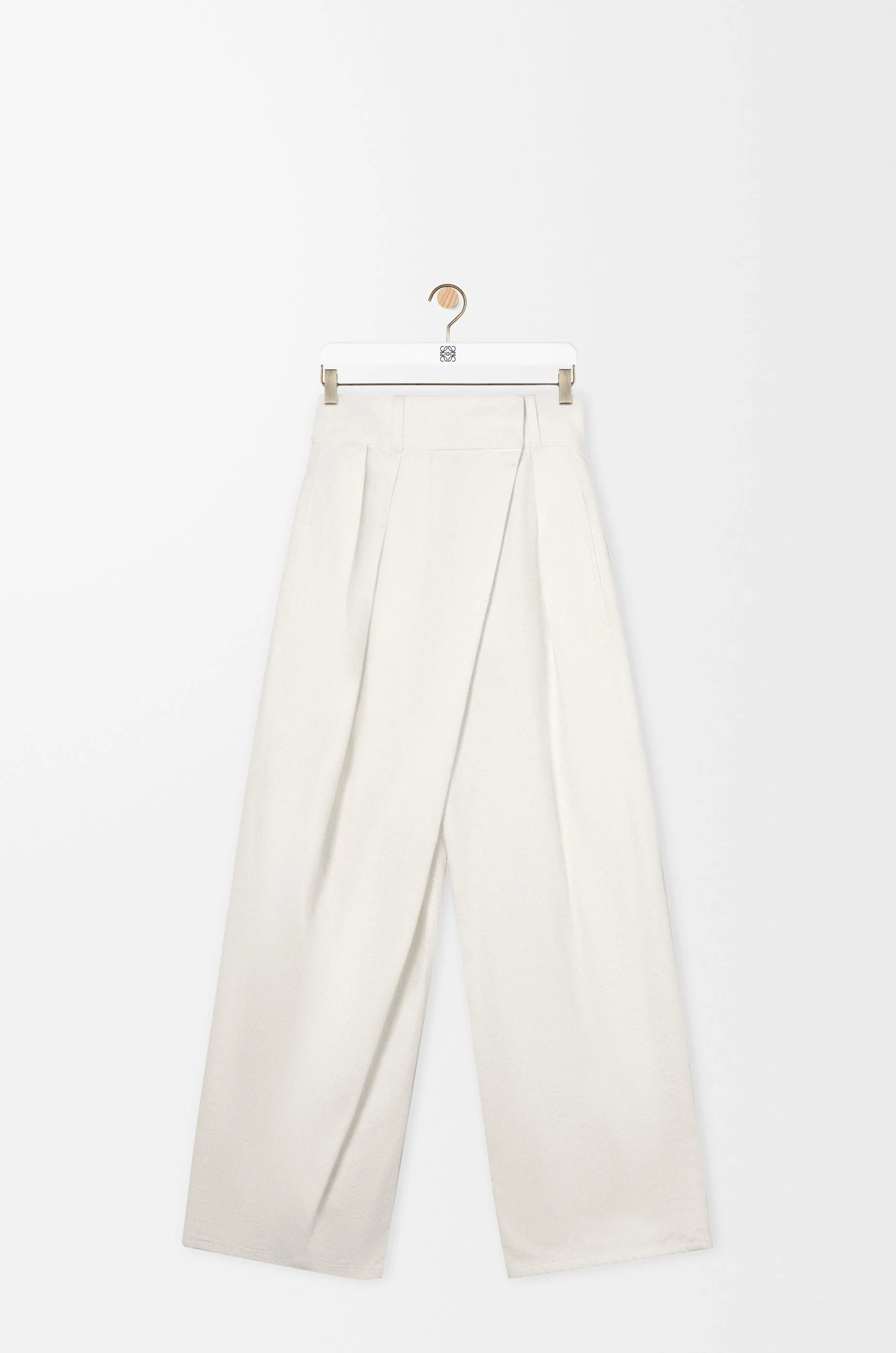 Jeans in lightweight cotton denim featuring an asymmetric construction with a wrap front. - Regular fit, regular length - High waist, loose leg - Concealed zip fly - Seam pockets, rear patch pocket - LOEWE embossed leather patch placed at the back Colour: White Main material: Cotton Weight: 0.6 kg Made in: Italy Materials & care Main Material: 100% cotton