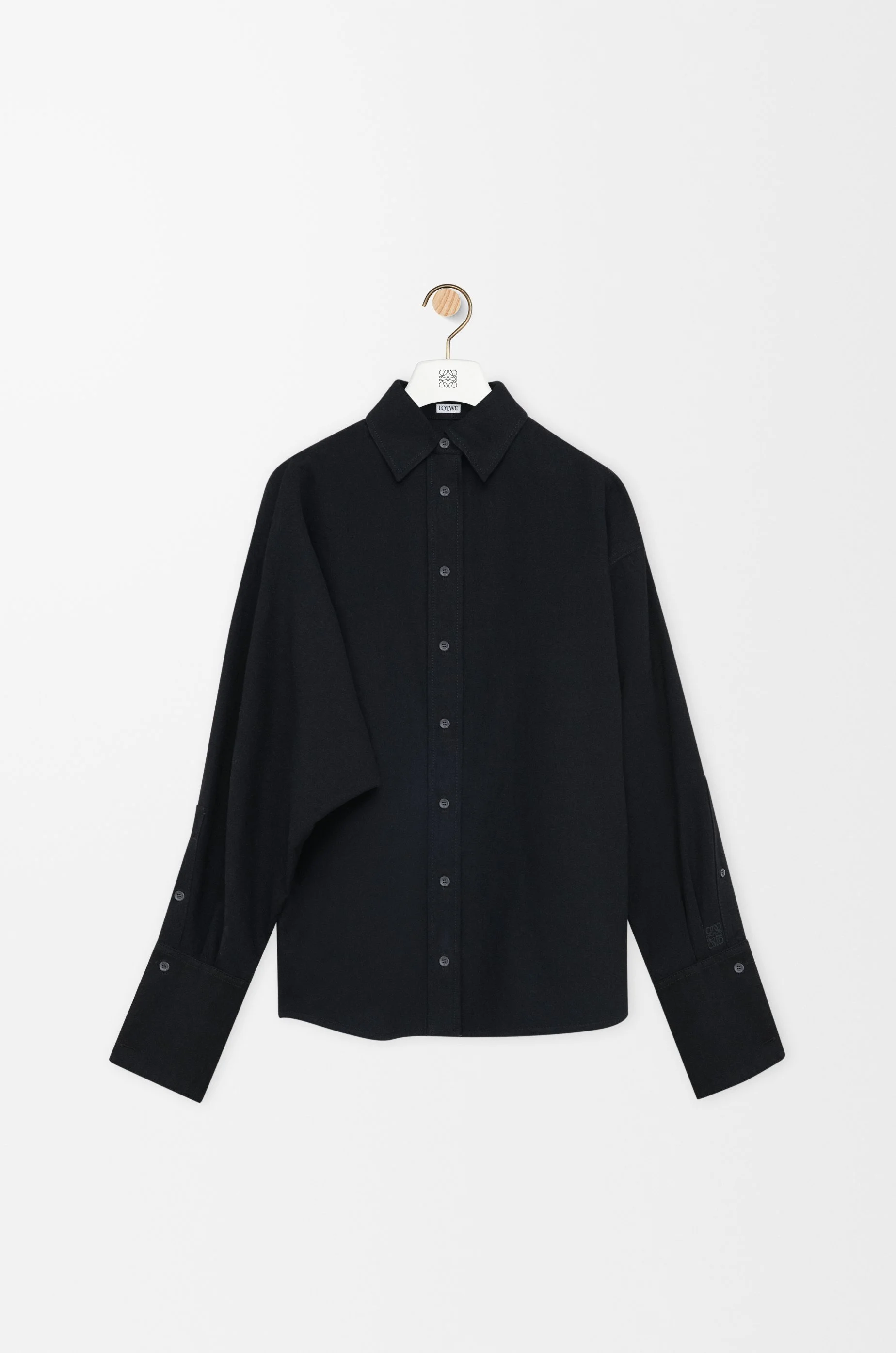 Shirt in lighweight cotton denim featuring an asymmetric construction with a batwing sleeve on one side. - Relaxed fit, regular length - Classic collar - Button front fastening - Buttoned French cuffs - Anagram embroidery placed on the sleeve Colour: Black Main material: Cotton Weight: 0.5 kg Made in: Italy Materials & care Main Material: 100% cotton