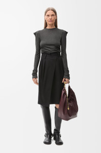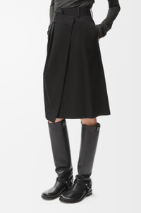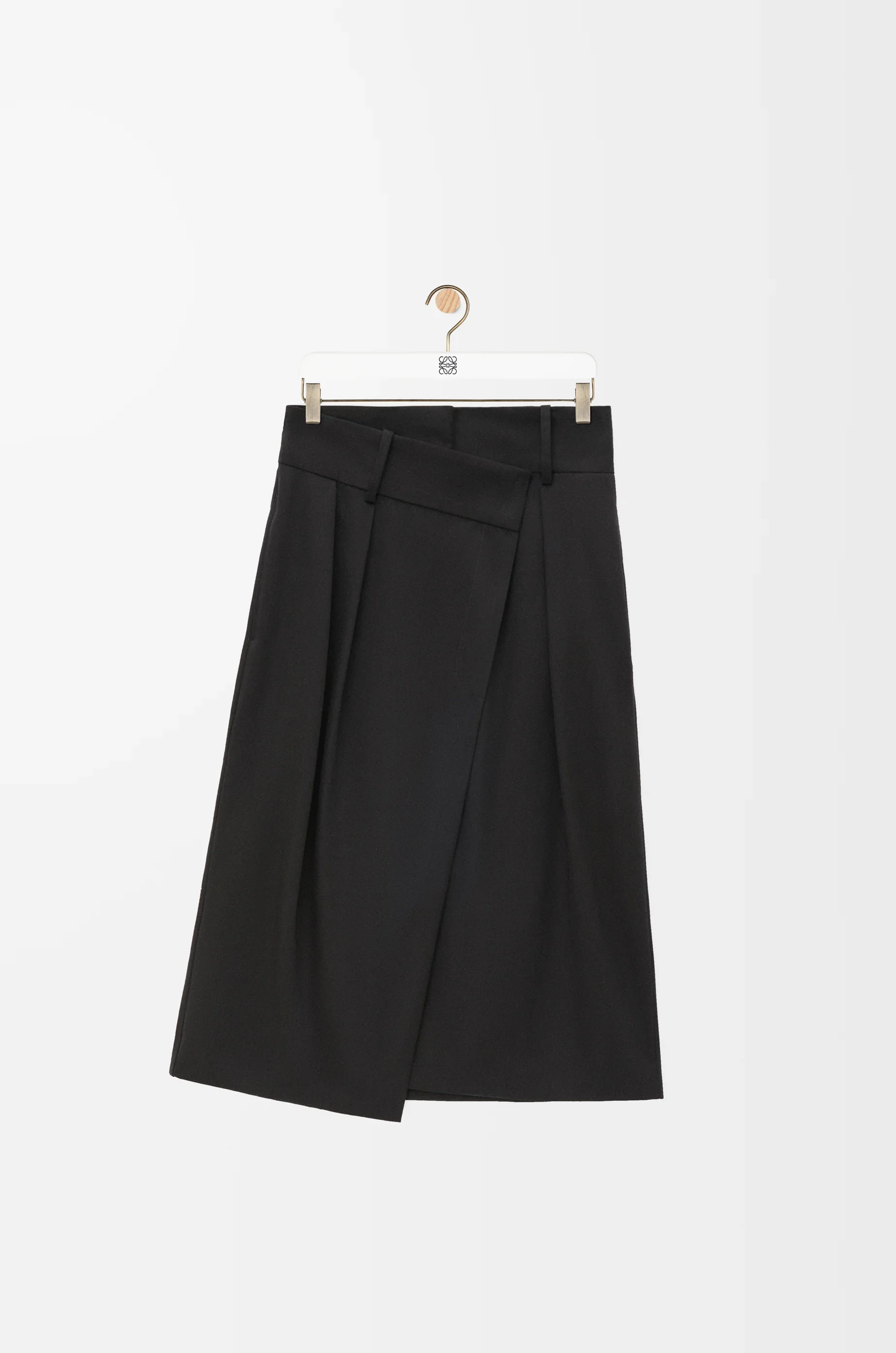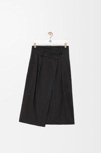 Skirt crafted in lightweight soft cotton silk gabardine. - Regular fit - Knee length - High waist - Asymmetric construction with wrap front - Concealed zip fastening - Seam pockets - Buttoned rear welt pocket - LOEWE embossed leather patch placed at the back Details - Colour : Black - Main material : Cotton/Silk - Weight : 0.45 kg - Model ID : S540Y08XAN - Made in : Italy