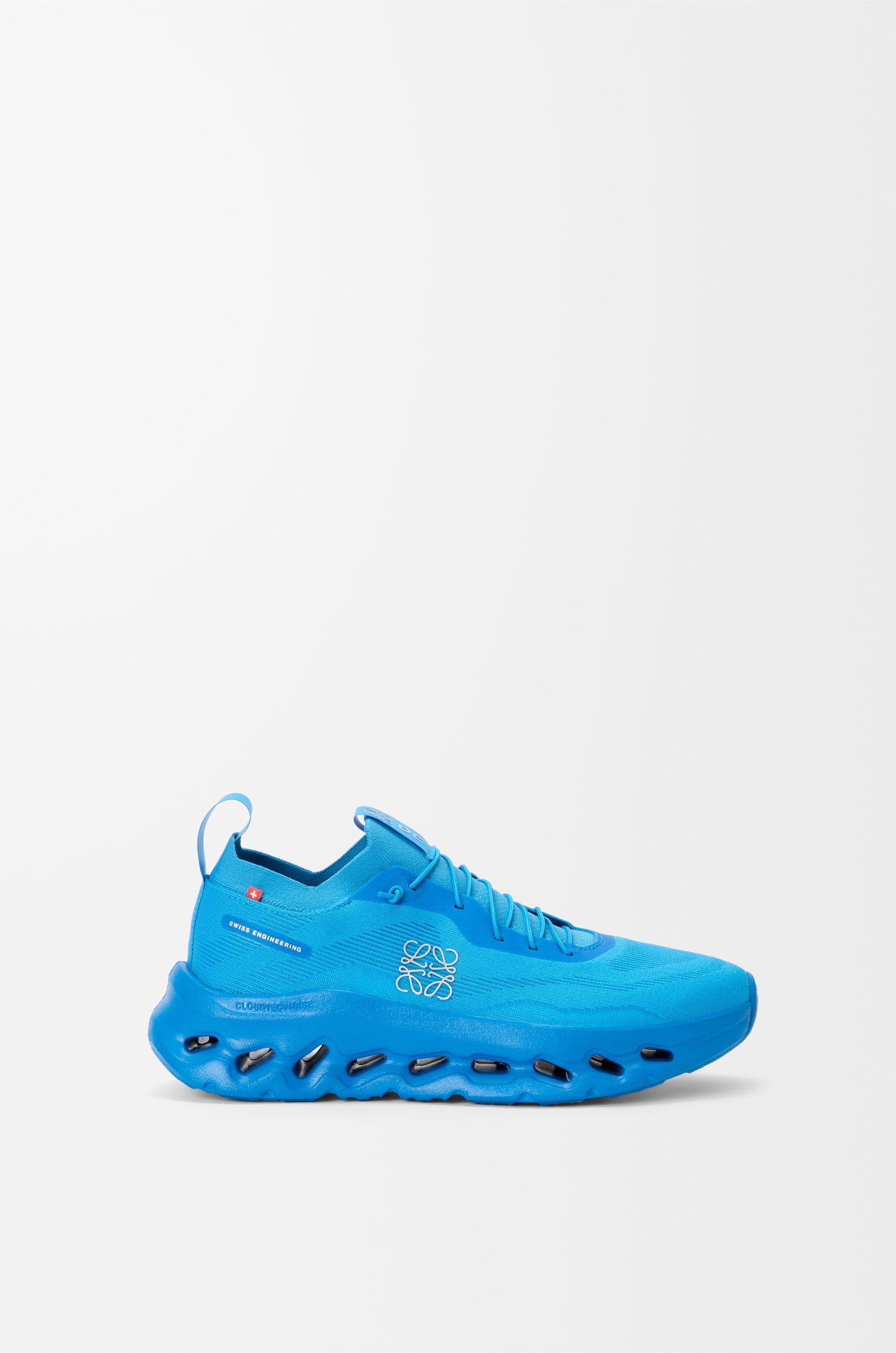 Lightweight sneaker in recycled polyester with an engineered midsole featuring the CloudTec® Phase technology and a knitted mesh sock upper and back. - Light foam sole with rubber pods - Lace fastening with double laces provided - Back loop for easy step in - Runs small - if in between sizes, we suggest to order a size up - For more information, please review the size guide - LOEWE Anagram and On logo placed at the sides Colour: Electric Blue Main material: Recycled Polyester Weight: 0.25 kg