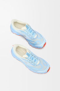 Lightweight sneaker in multilayered translucent TPU and semi-translucent recycled polyester mesh printed with an oversized Anagram. The Cloudventure 2.0 shoe comes with the Cloudtec® outsole technology engineered for performance and comfort. - Lace fastening - LOEWE x On logo on front loop, Anagram on right side, On logo on left side - Missiongrip™ marble-effect rubber outsole - Runs small to size, we suggest to order a size up. - For more information, please review the size guide. Colour: Blue/Red/White Main material: Polyester Weight: 0.55 kg