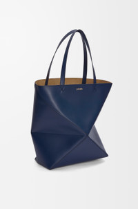 The Puzzle Fold Tote takes the iconic bag’s signature geometric lines and reimagines them in graphic and architectural panels that allow the bag to fold completely flat, making it the perfect travel companion. Soft, lightweight and inventively crafted, it is finished with discreet LOEWE branding. This XL version is crafted in shiny calfskin. - Shoulder or hand carry - Suede lining - Gold embossed LOEWE Details - Colour: Abyss Blue - Main material: Shiny Calf - Handle drop: 26 cm - Weight: 0.6 kg - Height (cm): 41 - Width (cm): 42 - Depth (cm): 18 - Height (inch): 16.1 - Width (inch): 16.5 - Depth (inch): 7.1 - Model ID: B933Q18X01 - CIL: 0011090099 - Made in: Spain