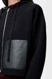Zip-up hoodie in medium-weight compact wool. - Relaxed fit, short length - Hooded collar - Zip front fastening - Embossed Anagram placed on leather patch pockets Colour: Black Main material: Wool Weight: 0.7 kg Made in: Italy