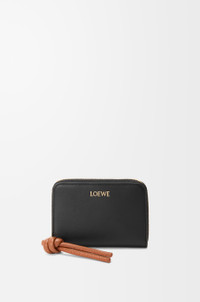 Zipped coin purse in shiny nappa calfskin featuring a contrast knot zip pull. - One coin compartment, two internal pockets - Zip closure - Contrast calfskin lining - Gold embossed LOEWE Colour: Black/Squirrel Metallic colour: Gold Main material: Shiny nappa calf Weight: 0.07 kg Height: 7.3 cm Width: 10.2 cm Depth: 1.8 cm Made in: Spain