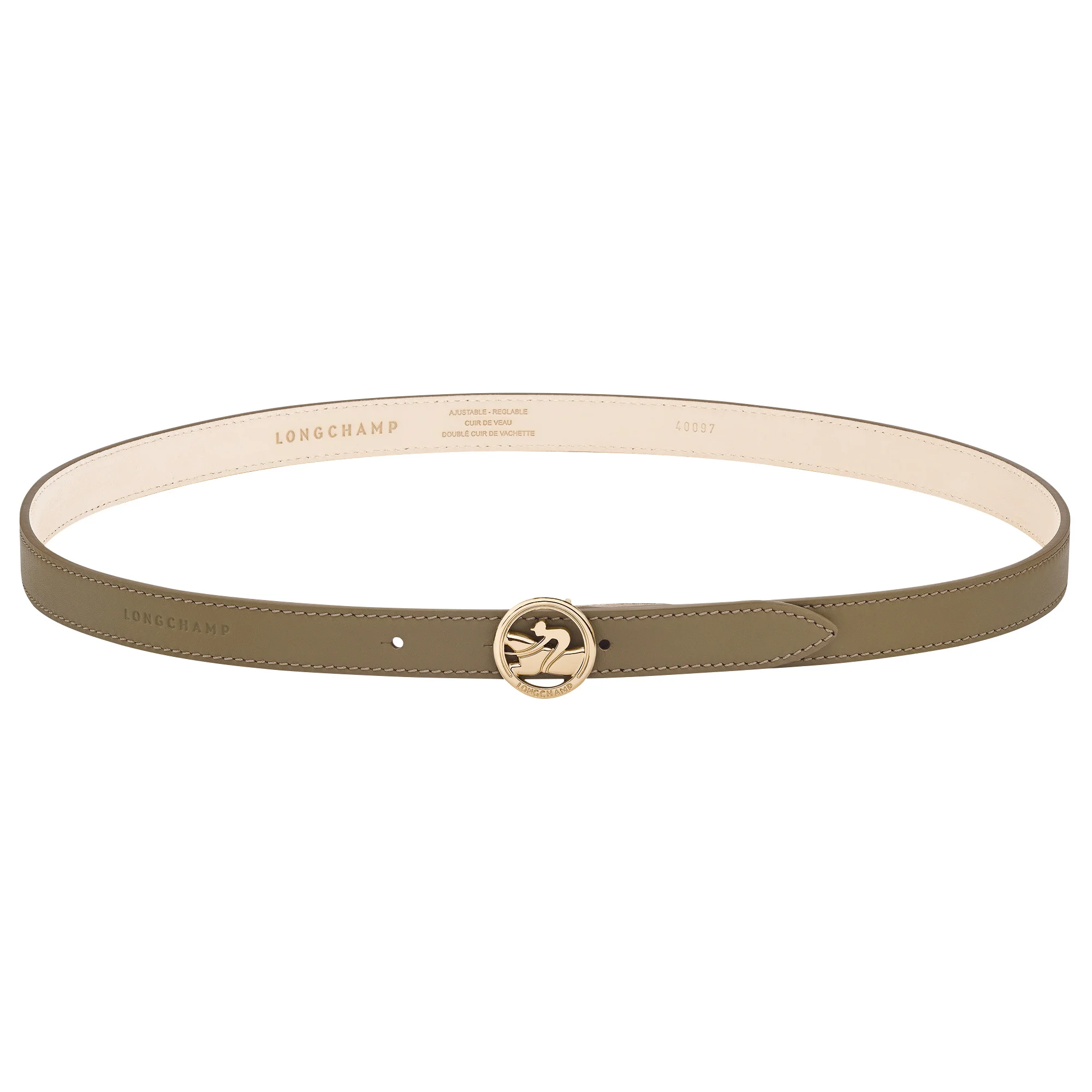Product Details Reference : 40097HFK510 Dimensions : 37.4 in (L) x 0.8 in (H) Material : Calfskin leather Lining : Nubuck cowhide Exterior details Buckle type : Medal