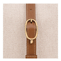 Product Details Reference : 10367HJG121 Dimensions : 7.5 in (L) x 12.6 in (H) x 7.5 in (W) Material : Flecked cotton canvas Metallic Hardware : Very pale gold color Trimming : Cowhide leather Weight : 1.02 lb