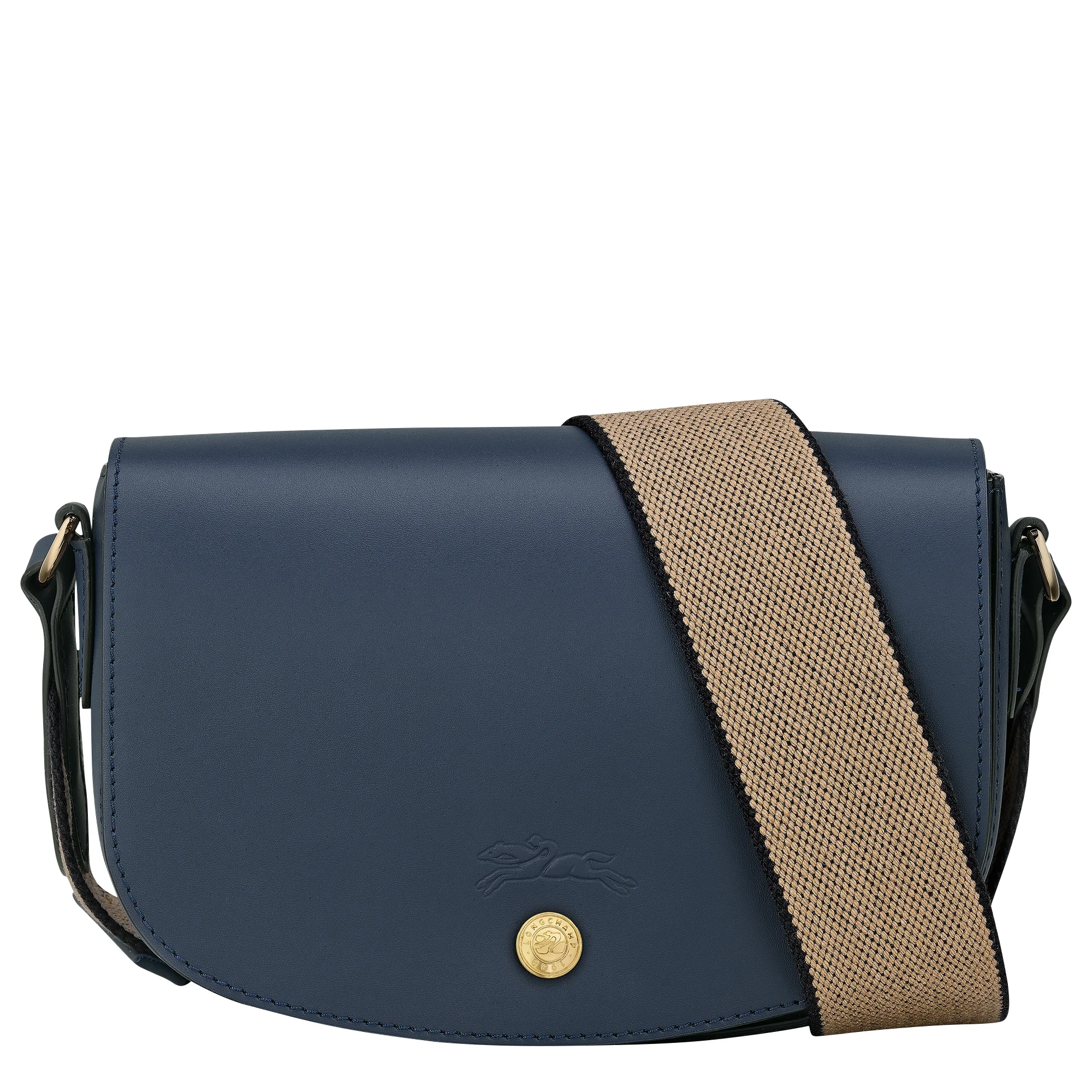 Product Details Reference : 10253HFY006 Dimensions : 7.9 in (L - measured at the base of the bag) x 5.1 in (H) x 2.4 in (W) Material : Calfskin leather Metallic Hardware : Very pale gold color Lining : Split velvet cowhide Weight : 0.79 lb Closing : Snap button The leathers of Longchamp bags may have subtle variations. These reflect the vivid nature of the leathers used in our workshops and reveal the authenticity of their appearance as well as their exceptional quality. Exterior details Strap Height : 34-60 cm / 13.4-23.6 in Strap : Adjustable interior details Flat pocket : 1