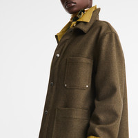 Product Details Reference : 61440FLMM171TS Material : 48% Wool, 38% Polyester, 12% Viscose, 2% Elasthane Collar : Shirt collar Closing : Snap button SIZE & FIT Mannequin informations : The model is 5' 11'' and is wearing a size 4