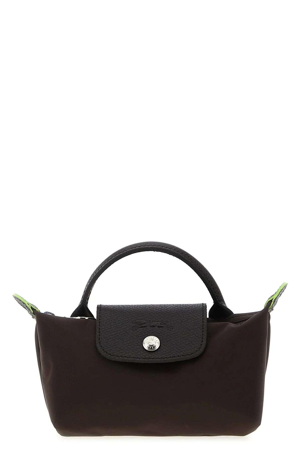 cod. 34175919002 'Le Pliage Green' canvas clutch bag, top zip closure, Russian leather handle, Russian leather flap closure with snap button and embossed logo. This clutch can also be used as a beauty case. SUSTAINABLE: Product made with recycled polyamide. Color: Brown Size & Fit: W 17 x H 11 x D 5.5 cm Composition: 100% polyamide Made in: France