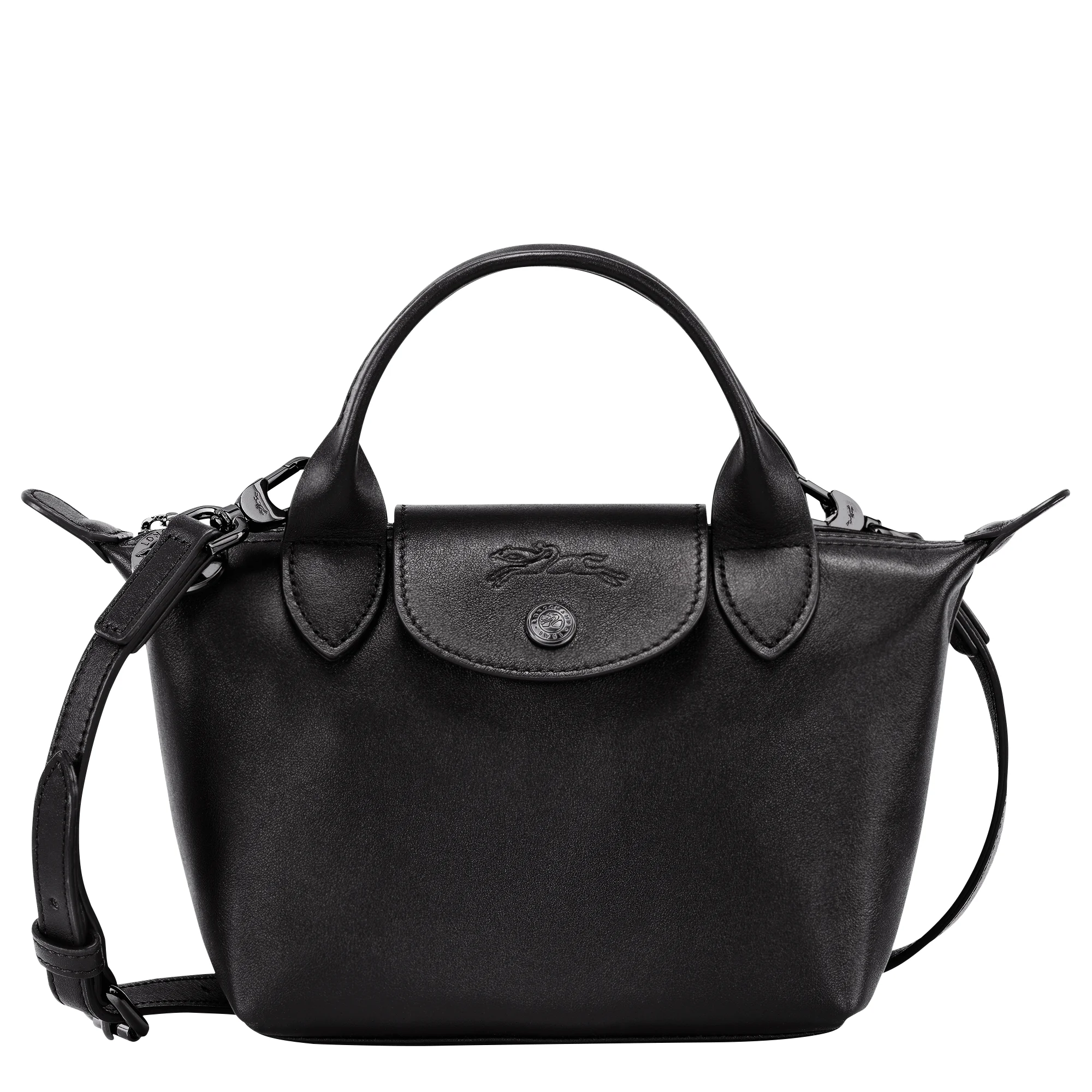 Product Details Reference : L1500987001 Dimensions : 6.7 in (L - measured at the base of the bag) x 5.5 in (H) x 3.9 in (W) Material : Cowhide leather Metallic Hardware : Dark silver color Lining : Polyamide and polyester - Recycled jacquard, LGP all-over Weight : 0.67 lb Closing : Zipper and snap closure The leathers of Longchamp bags may have subtle variations. These reflect the vivid nature of the leathers used in our workshops and reveal the authenticity of their appearance as well as their exceptional quality. Exterior details Strap Height : 30-65 cm / 11.8-25.6 in Handle Height : 8 cm / 3.1 in Strap : Adjustable and removable shoulder strap interior details Zipped pocket : 1 Flat pocket : 1