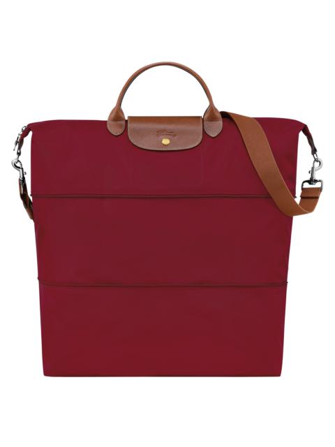 Product Details Reference : L1911089504 Dimensions : 17.7 in (L - measured at the base of the bag) x 13.8/20.5 in (H) x 9.1 in (W) Please refer to your airline's size guide to ensure it complies with their standards. Material : Polyamide fabric with a minimum of 70% recycled fibers, with interior coating Metallic Hardware : Gold button and dark silver zipper Trimming : Russian leather (cowhide) Weight : 1.56 lb Minimum volume : 30 l Maximum volume : 50 l Closing : 1 Zipped compartment with snap closure Exterior details Extensible : YES Strap Height : 22-50 cm / 8.7-19.7 in Handle Height : 10 cm / 3.9 in Zipped pocket : 1 Strap : Ajustable and removable shoulder strap interior details Flat pocket : 1 Lining : Unlined Coating : Nylon