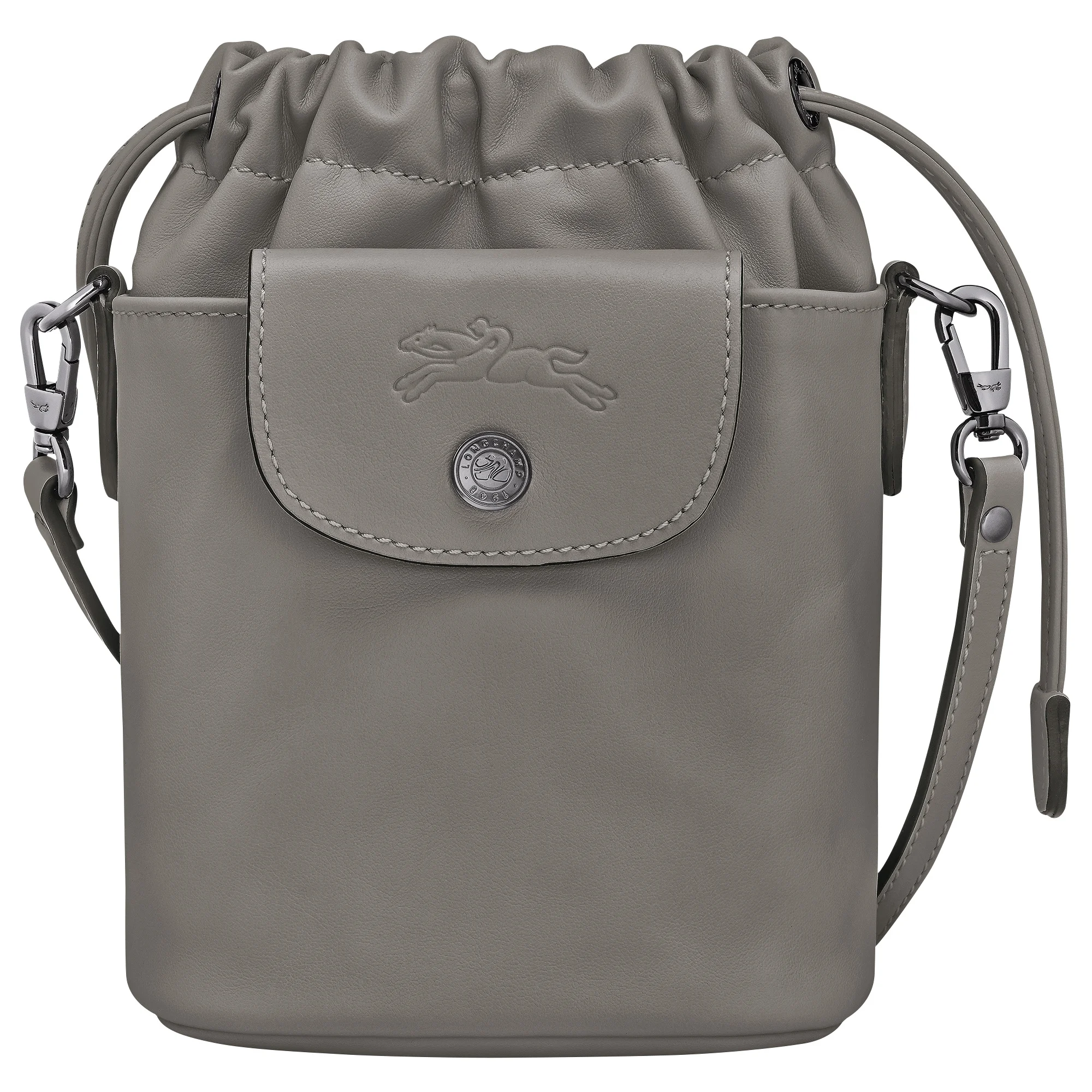 Product Details Reference : 10317987P55 Dimensions : 5.3 in (L - measured at the base of the bag) x 7.5 in (H) x 4.7 in (W) Material : Cowhide leather Metallic Hardware : Dark silver color Weight : 0.48 lb Closing : Drawstring The leathers of Longchamp bags may have subtle variations. These reflect the vivid nature of the leathers used in our workshops and reveal the authenticity of their appearance as well as their exceptional quality. Exterior details Strap : Adjustable and removable