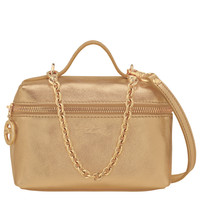 Product Details Reference : 10187HIO124 Dimensions : 6.3 in (L - measured at the base of the bag) x 3.9 in (H) x 4.3 in (W) Material : Metallic calfskin leather Metallic Hardware : Gold color Weight : 0.62 lb Closing : Zipper The leathers of Longchamp bags may have subtle variations. These reflect the vivid nature of the leathers used in our workshops and reveal the authenticity of their appearance as well as their exceptional quality. Exterior details Strap : Adjustable and removable