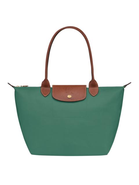 Product Details Reference : L2605987001 Dimensions : 11 in (L - measured at the base of the bag) x 10.4 in (H) x 6.1 in (W) Material : Cowhide leather Metallic Hardware : Dark silver color Lining : Recycled polyester - all-over LGP jacquard Weight : 1.06 lb Closing : Zipper and snap button The leathers of Longchamp bags may have subtle variations. These reflect the vivid nature of the leathers used in our workshops and reveal the authenticity of their appearance as well as their exceptional quality. Exterior details Handle Height : 21 cm / 8.3 in interior details Zipped pocket : 1 Flat pocket : 1