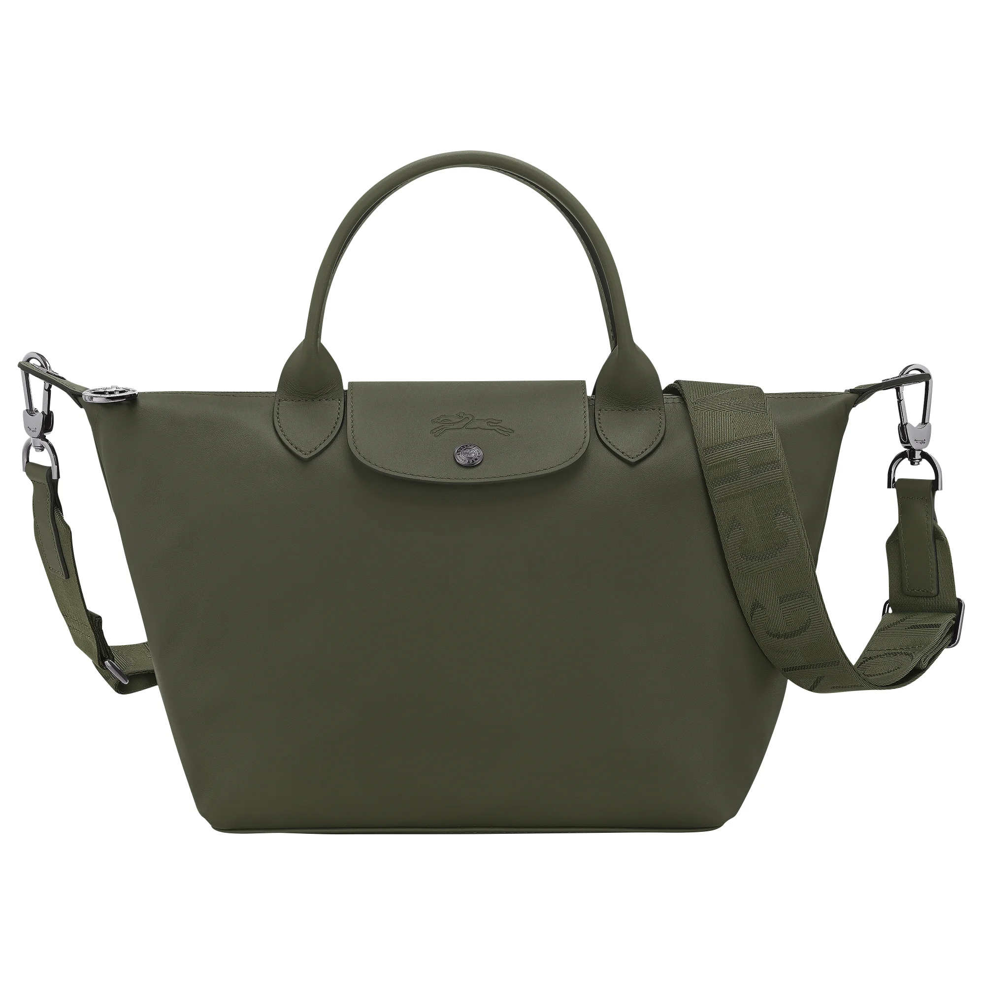 Product Details Reference : L1512987549 Dimensions : 9.8 in (L - measured at the base of the bag) x 9.1 in (H) x 6.3 in (W) Material : Cowhide leather Metallic Hardware : Dark silver color Lining : Polyamide and polyester - Recycled jacquard, LGP all-over Weight : 1.18 lb Closing : Zipper and snap closure The leathers of Longchamp bags may have subtle variations. These reflect the vivid nature of the leathers used in our workshops and reveal the authenticity of their appearance as well as their exceptional quality. Exterior details Strap Height : 35-60 cm / 13.8-23.6 in Handle Height : 12 cm / 4.7 in Strap : Adjustable and removable shoulder strap interior details Zipped pocket : 1 Flat pocket : 1