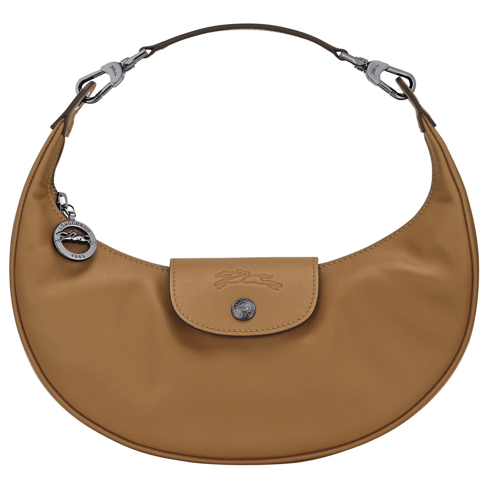 Product Details Reference : 10316987004 Dimensions : 10.6 in (L - measured at the base of the bag) x 4.7 in (H) x 3.3 in (W) Material : Cowhide leather Metallic Hardware : Dark silver color Weight : 0.60 lb Closing : Zipper and snap button The leathers of Longchamp bags may have subtle variations. These reflect the vivid nature of the leathers used in our workshops and reveal the authenticity of their appearance as well as their exceptional quality. interior details Zipped pocket : 1