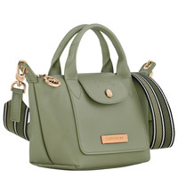 Product Details Reference : L1500HFZ466 Dimensions : 6.7 in (L - measured at the base of the bag) x 5.5 in (H) x 3.9 in (W) Material : Cowhide leather Metallic Hardware : Very pale gold color Trimming : Calfskin leather Lining : Recycled polyester - all-over LGP jacquard Weight : 0.82 lb Closing : Zipper and snap button The leathers of Longchamp bags may have subtle variations. These reflect the vivid nature of the leathers used in our workshops and reveal the authenticity of their appearance as well as their exceptional quality. Exterior details Strap Height : 55 cm / 21.7 in Handle Height : 7 cm / 2.8 in Flat pocket : 2 Strap : Removable interior details Zipped pocket : 1 Flat pocket : 1