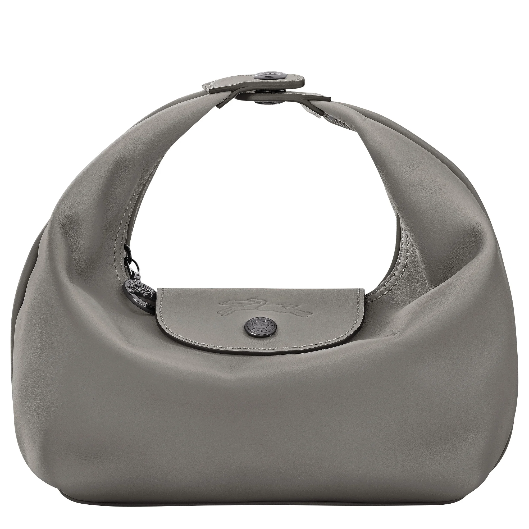 Product Details Reference : 10291987P55 Dimensions : 7.1 in (L - measured at the base of the bag) x 7.1 in (H) x 4.7 in (W) Material : Cowhide leather Metallic Hardware : Dark silver color Lining : Recycled polyester - all-over LGP jacquard Weight : 0.41 lb Closing : Zipper and snap button The leathers of Longchamp bags may have subtle variations. These reflect the vivid nature of the leathers used in our workshops and reveal the authenticity of their appearance as well as their exceptional quality. Exterior details Handle Height : 8 cm / 3.1 in interior details Credit card space : 1
