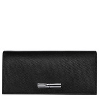 Product Details Reference : L3044HFP001 Dimensions : 7.7 in (L) x 3.5 in (H) Material : Cowhide leather Metallic Hardware : Silver color Lining : Recycled polyester - Jacquard Longchamp horses Closing : Snap button interior details Zipped pocket : 4 Flat pocket : 4 Credit card space : 12 Coin slot : YES
