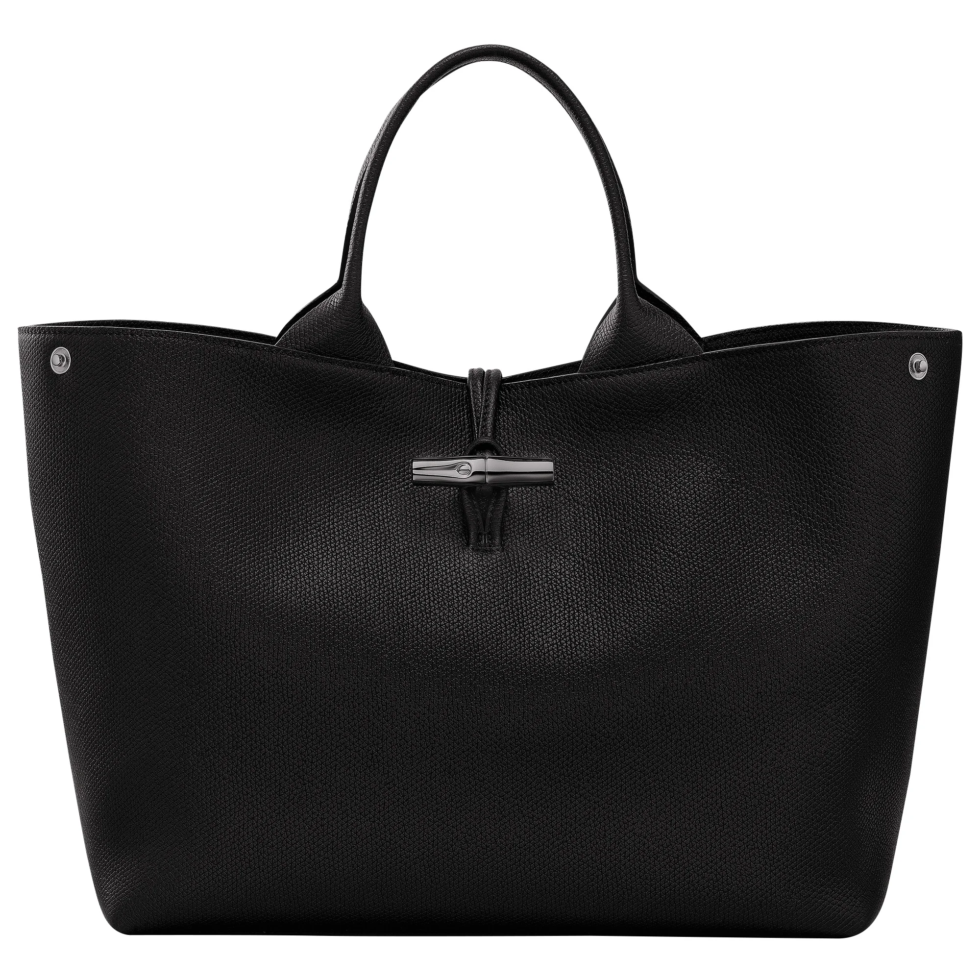 Product Details Reference : 10290HFP001 Dimensions : 13.4 in (L - measured at the base of the bag) x 10.6 in (H) x 6.7 in (W) Material : Cowhide leather Metallic Hardware : Silver color Lining : Recycled polyester - Jacquard Longchamp horses Weight : 1.63 lb Closing : Metal bamboo The leathers of Longchamp bags may have subtle variations. These reflect the vivid nature of the leathers used in our workshops and reveal the authenticity of their appearance as well as their exceptional quality. Exterior details Handle Height : 14 cm / 5.5 in interior details Zipped pocket : 1 Flat pocket : 1 Credit card space : 2