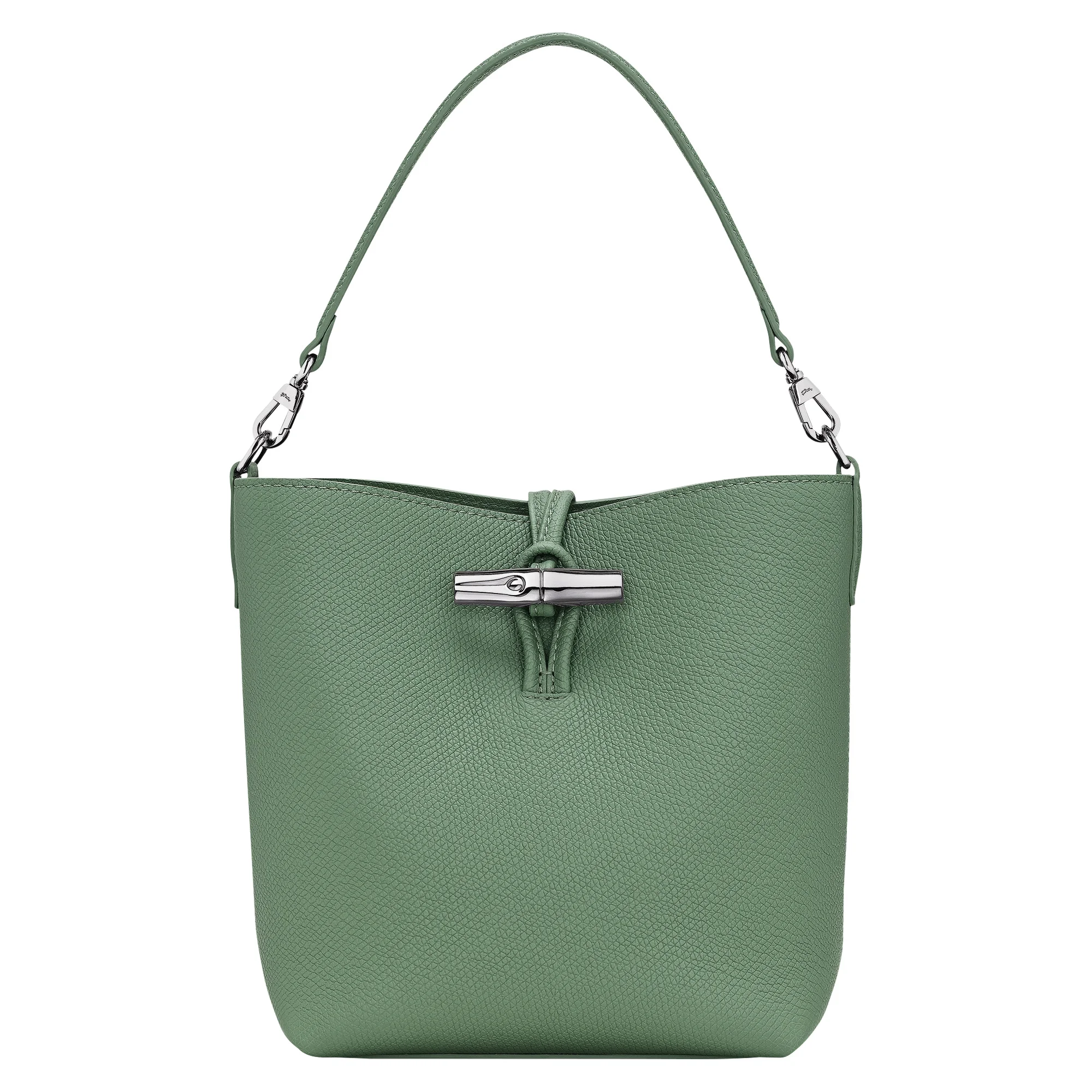 Product Details Reference : 10314HFPM16 Dimensions : 6.7 in (L - measured at the base of the bag) x 8.3 in (H) x 4.3 in (W) Material : Cowhide leather Metallic Hardware : Silver color Lining : Recycled polyester - Jacquard Longchamp horses Weight : 0.94 lb Closing : Metal bamboo The leathers of Longchamp bags may have subtle variations. These reflect the vivid nature of the leathers used in our workshops and reveal the authenticity of their appearance as well as their exceptional quality. Exterior details Strap Height : 51-59 cm / 20.1-23.2 in Strap : Adjustable and removable interior details Flat pocket : 1 Credit card space : 2