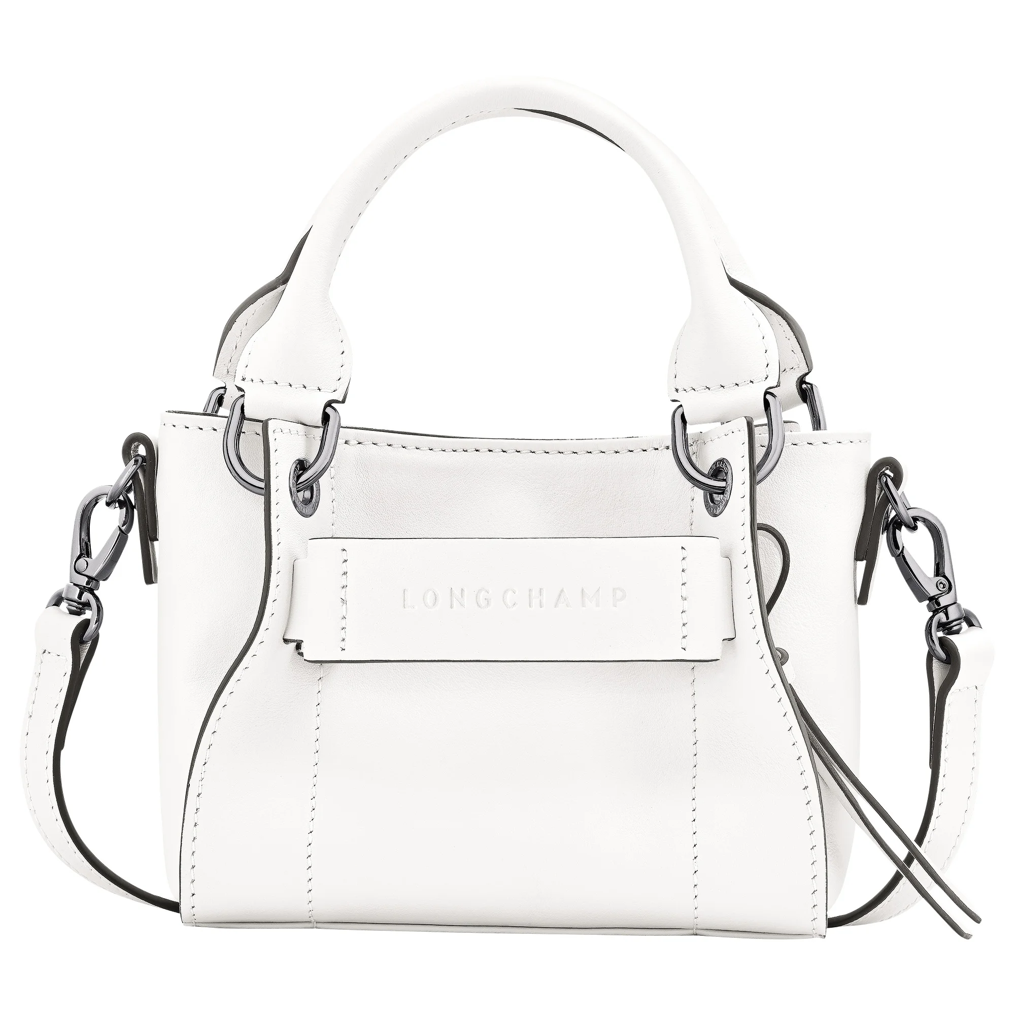 Product Details Reference : 10254HCV607 Dimensions : 6.3 in (L - measured at the base of the bag) x 5.3 in (H) x 3.1 in (W) Material : Calfskin leather Metallic Hardware : Dark silver color Lining : Recycled polyester - Jacquard Longchamp horses Weight : 0.72 lb Closing : Magnetic snap button The leathers of Longchamp bags may have subtle variations. These reflect the vivid nature of the leathers used in our workshops and reveal the authenticity of their appearance as well as their exceptional quality. Exterior details Strap Height : 51-59 cm / 20.1-23.2 in Handle Height : 8 cm / 3.1 in Strap : Adjustable and removable Strap length : 59- cm / 23.2- in interior details Zipped pocket : 1 Flat pocket : 1 Pen pocket : 1