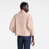 Product Details Reference : 61500ACS0181TS Material : 100% Lambskin leather, Secondary material : 98% Cotton, 2% Elastane Collar : Shirt collar Sleeves : Long sleeves Closing : Snap button SIZE & FIT Mannequin informations : The model is 5' 11'' and is wearing a size 4